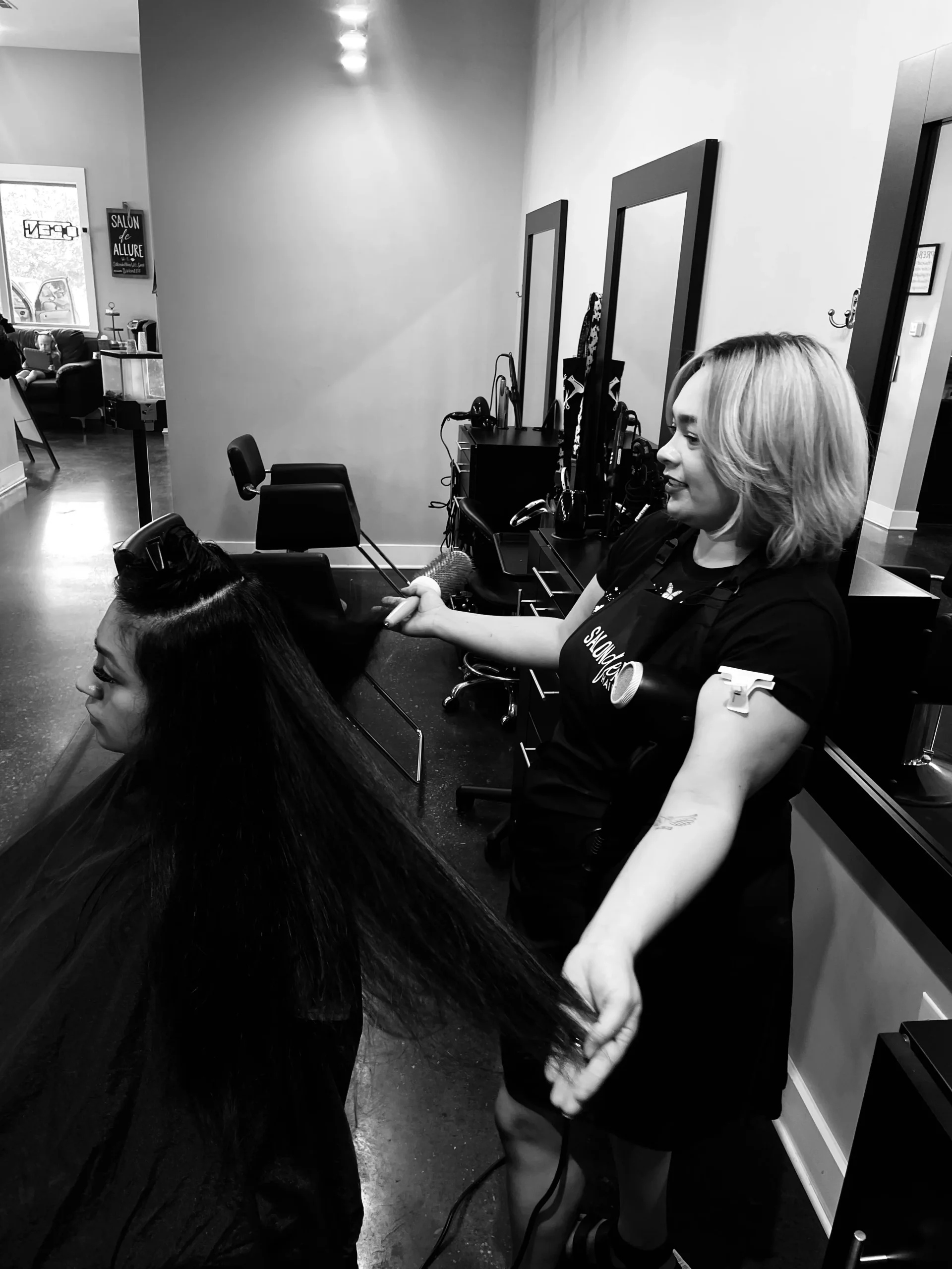 Salon de Allure is your local beauty haven, combining high-quality hair, nail, and tanning services with a warm, inviting atmosphere. Whether you’re here for a complete makeover or just a quick touch-up, our team is committed to making you feel fabulous every time you visit.